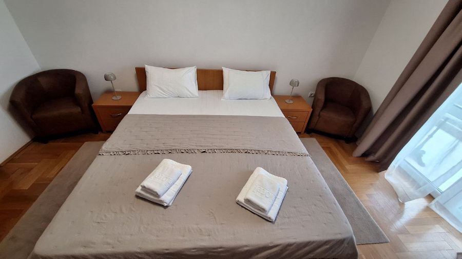 В пешей доступности фамильные рестораны «Драго» и «Кентера». Расстояние от аэропорта Тиват — 28 км, от Подгорицы — 61 км.Современные светлые номера, идеальное размещение для спокойного семейного отдыха и пар. Гости отмечают идеальную чистоту апартаментов и доброжелательность хозяйки. Есть небольшой ресепшн на нулевом этаже, собственный садик с фруктовыми деревьями.
